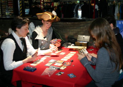 Riparata la nave e rifocillata a dovere la ciurma di grogh, i tre giorni di dimostrazioni ci sono sembrati una passeggiata, dopo la tempesta alla Play-Modena.Il primo approdo è stato il venerdì sera a Padova, al Circolo Overlord: a chiamarci era stata una conoscenza fatta al porto di Venezia, che desiderava sfidare il Capitano in una partita all’ultimo sangue… beh, forse era pomodoro, e non sangue, quello che è stato versato, ma anche il Capitano ha dovuto ammettere la sconfitta di fronte all’unica fanciulla del tavolo che aveva superato tutti conquistando la maggior quantità di dobloni.