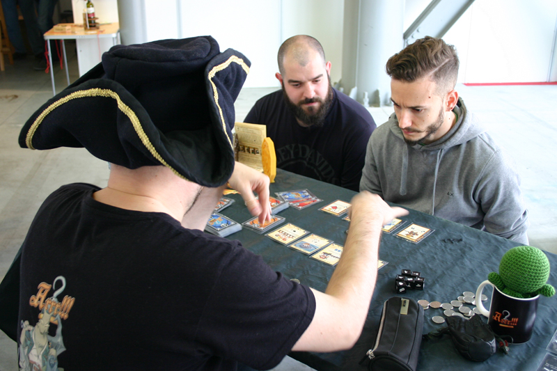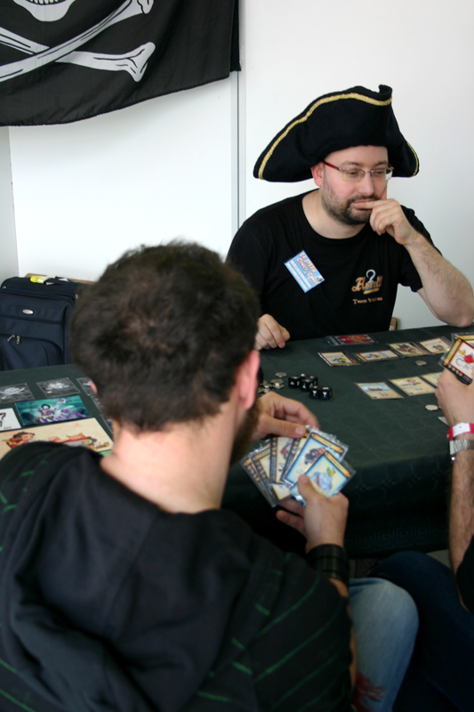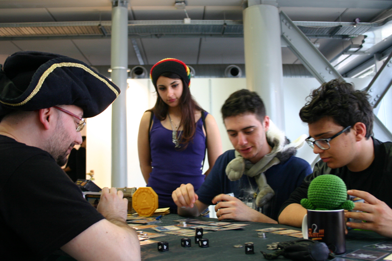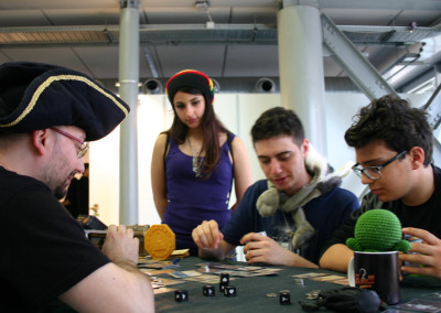 Curiosi ed amici di Facebook ci hanno comunque raggiunto per avere informazioni e fare partite. Voglio ricordare con grande piacere i due amici giunti al nostro stand con l’animo piratesco, a cui va il merito di non aver vinto una partita col Capitano, ma di esser riusciti a “togliergli il cappello”, mettendolo in seria difficoltà.
